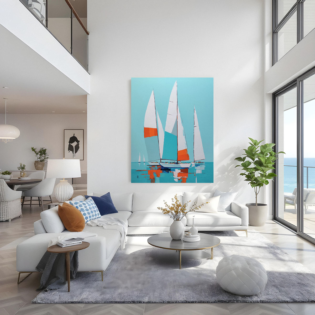 Dans l’immensité du bleu , l’orange vif surgit, un cri silencieux, un adieu au rivage qui s’efface déjà.