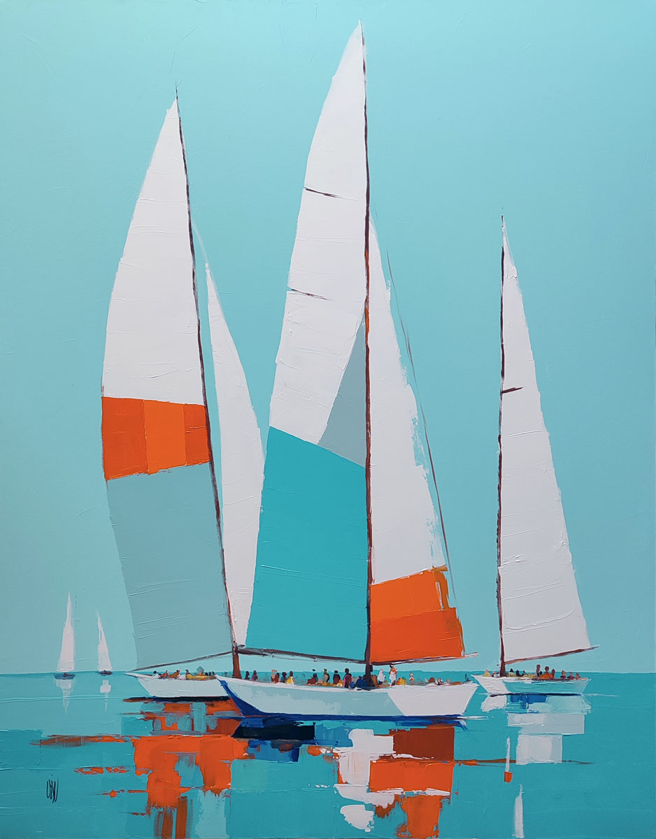 Les voiliers ne sont plus que des silhouettes aux formes essentielles, voiles blanches tendues comme une promesse fragile.